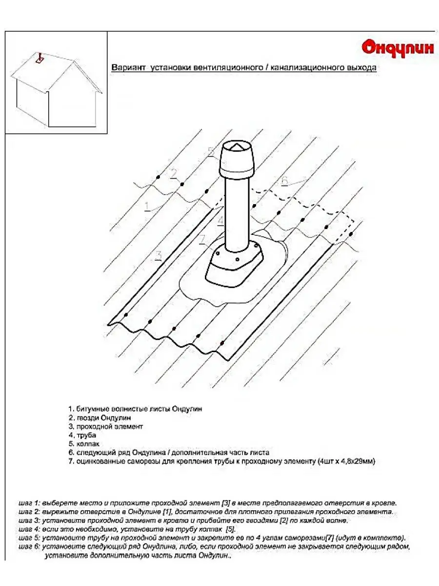 2. закрепить гвоздями "Ондулин" основание (проходной элемент) по каждой волне,