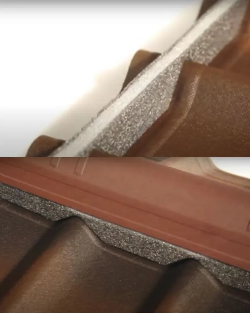 Предназначен для защиты подкровельного пространства от ветра, снега, мелкого мусора и пыли, от проникновения птиц: устанавливается в просветах, которые образуются между битумными листами и обрешеткой или другими кровельными элементами на хребтах или на карнизах крыши. В случае необходимости может участвовать в устройстве вентиляции кровли и отведении конденсата: в этом случае при укладке заполнителя в нем нужно проделать отверстия, которые уже нанесены методом перфорации. Поэтому выдавить отверстия можно обычной отверткой.